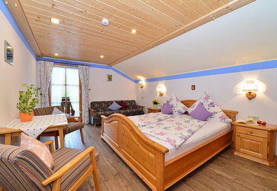 Sie wohnen in einer der angenehmen, heimeligen Ferienwohnungen mit Dusche/WC, Balkon und Kabel-TV sowie einem Brötchen- und Getränkeservice.